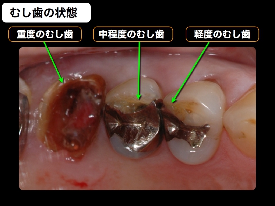 初期むし歯であれば簡単な治療で終わりますが、むし歯を放置していると